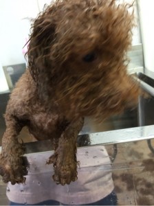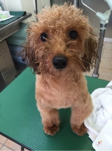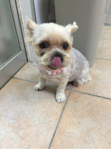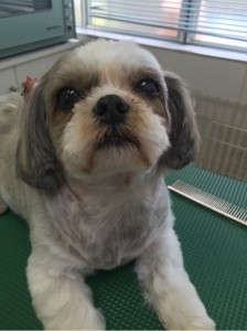 足が悪いので立てなくて ジョルジョくん、トリミング中頑張ってくれてます